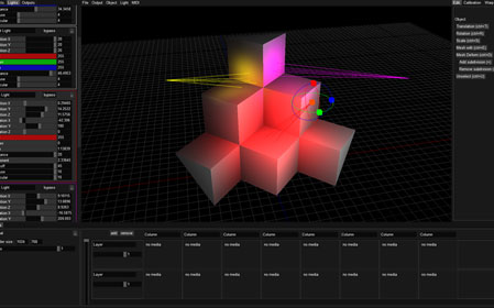 Il suffira alors d'avoir son objet en .obj (3d) de l’intégrer dans le soft et de venir poser autant de caméras virtuelles autour de lui qui correspondront à autant de vidéoprojecteurs utilisés pour faire le mapping de l'objet en 3 dimensions.