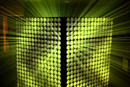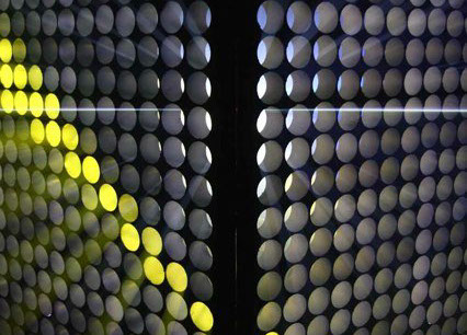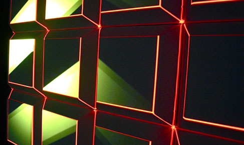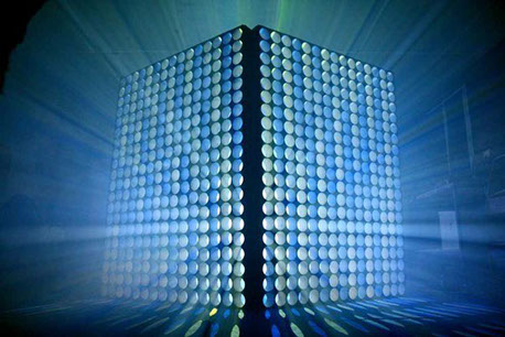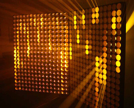 La particularité de sa structure lui permet tout aussi bien de capter, diffuser, laisser passer et faire rayonner la lumière et la vidéo projetée.