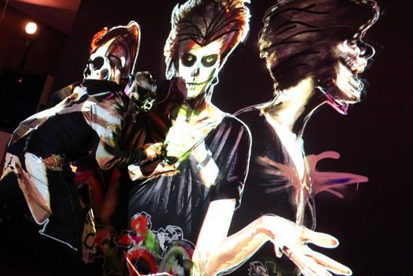 La création en temps réel d’animations à réactivité sonore vient relier l’image au son. La lumière projetée vient donner vie et animer la peinture. Cette technique Mix-Media fait une symbiose entre les arts numériques, plastiques, graphiques, sonores et la performance.